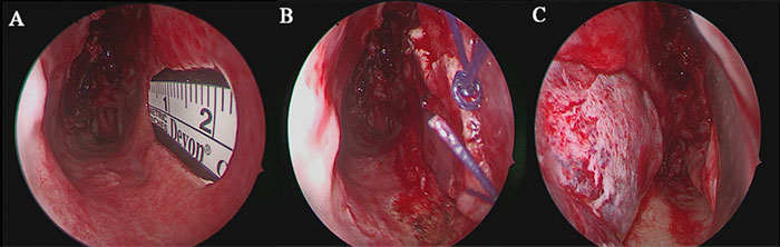 La perforación del tabique nasal o perforación del septum nasal es la aparición de un orificio anormal que comunica ambas fosas nasales, provocando síntomas molestos como obstrucción nasal, mucosidad, costras nasales y sangrados nasales frecuentes. Las causas que pueden provocar un tabique nasal perforado suelen estar relacionadas con cirugías nasales previas. Sin embargo, también es común encontrarnos casos de tabique nasal perforado por drogas o por un traumatismo. En nuestra clínica somos expertos en el diagnóstico y tratamiento de este tipo de patología, y pioneros en este tipo de tratamiento quirúrgico.La perforación del tabique nasal generalmente es consecuencia de cirugías nasales previas. No como consecuencia de una mala práctica, sino porque es uno de los riesgos al manipular el tabique nasal.Otras causas comunes de la presencia de un tabique nasal perforado son los traumatismos y las cauterizaciones repetidas sobre el septo nasal y/o los taponamientos nasales en personas con sangrados nasales (epistaxis) de repetición.Otras causas, no tan frecuentes de la perforación del tabique nasal, son las enfermedades sistémicas que ocasionan inflamación de la nariz y los senos paranasales, que terminan por afectar la circulación sanguínea del septum nasal para, finalmente, ocasionar una pérdida de tejido en el mismo. También está muy relacionada al abuso de sustancias tóxicas como la cocaína. El tabique nasal perforado por drogas es habitual ya que, el consumo por vía nasal genera daño directo sobre la mucosa y, además, contiene sustancias que generan anticuerpos que atacarán los vasos sanguíneos que irrigan la nariz.